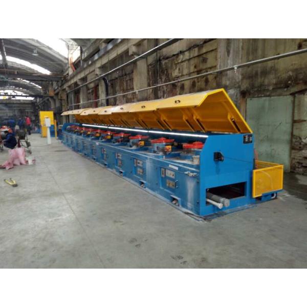 effect of cooling water, and increased the reel internal heat exchange area, practiceproves that the application of this structure, drum heat exchange efficiency more than 30%, thus greatly improve the drum water cooling effect; Another drum wall caneffectively prevent the scale deposit on the inner wall of the drum, further to ensure the water cooling effect, and improve the service life of the drum.to ensure the quality of steel wire drawing. Drum surface finish Ra0.4 or higher, the surface hardness of about HRC60°, drum set satisfies the requirement of high-speed drawing wire line height. Wear and tear up the slot free replacement within 5000h